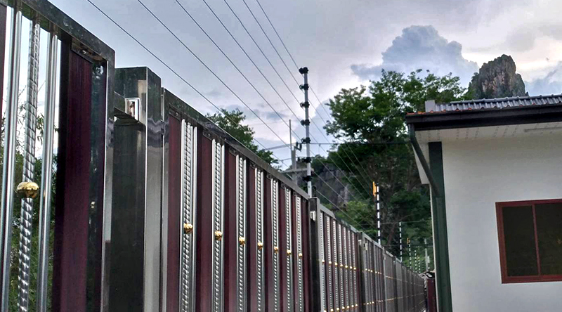 รั้วจะมีไฟทุกเส้น (ไม่ต้องเดินสลับกับสายดิน) พร้อมระบบแจ้งเตือนเมื่อมีการสัมผัสรั้ว ไฟตก ลวดขาด และระบบสำรองไฟ
