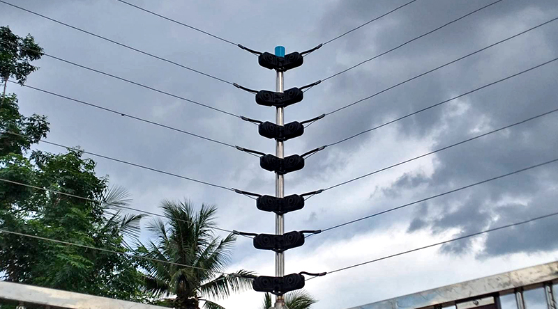 ประกอบด้วยเสาและลวดสปริงทนสนิม, ฉนวนทน UV และรับแรงดึงได้สูงเป็นพิเศษ